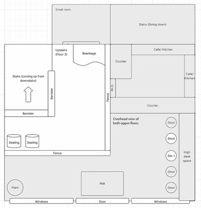 This is the floor plan of the venue... I used an online software to create it. I wanted to have an idea of the layout before designing the rest of the building so making a floor plan was beneficial for me to "see the vision".